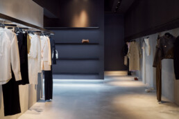 A magnificent location, this historic site at 1 Bond Street is an excellent example of cast-iron architecture. Designed in the late 19th century in the Second Empire style, the building features an elegantly adorned façade. The two-level design —ground floor and basement— of the new LUISAVIAROMA NYC store intertwines memory with modernity. The end result thrives on many juxtapositions: dark tones and delicate shades, materiality and color, architectural abstraction and artisanal detail, dazzling sunlight and sinuous shadows. Like an art gallery, the space unfolds in a progressive reveal along its 1,000 square meters.